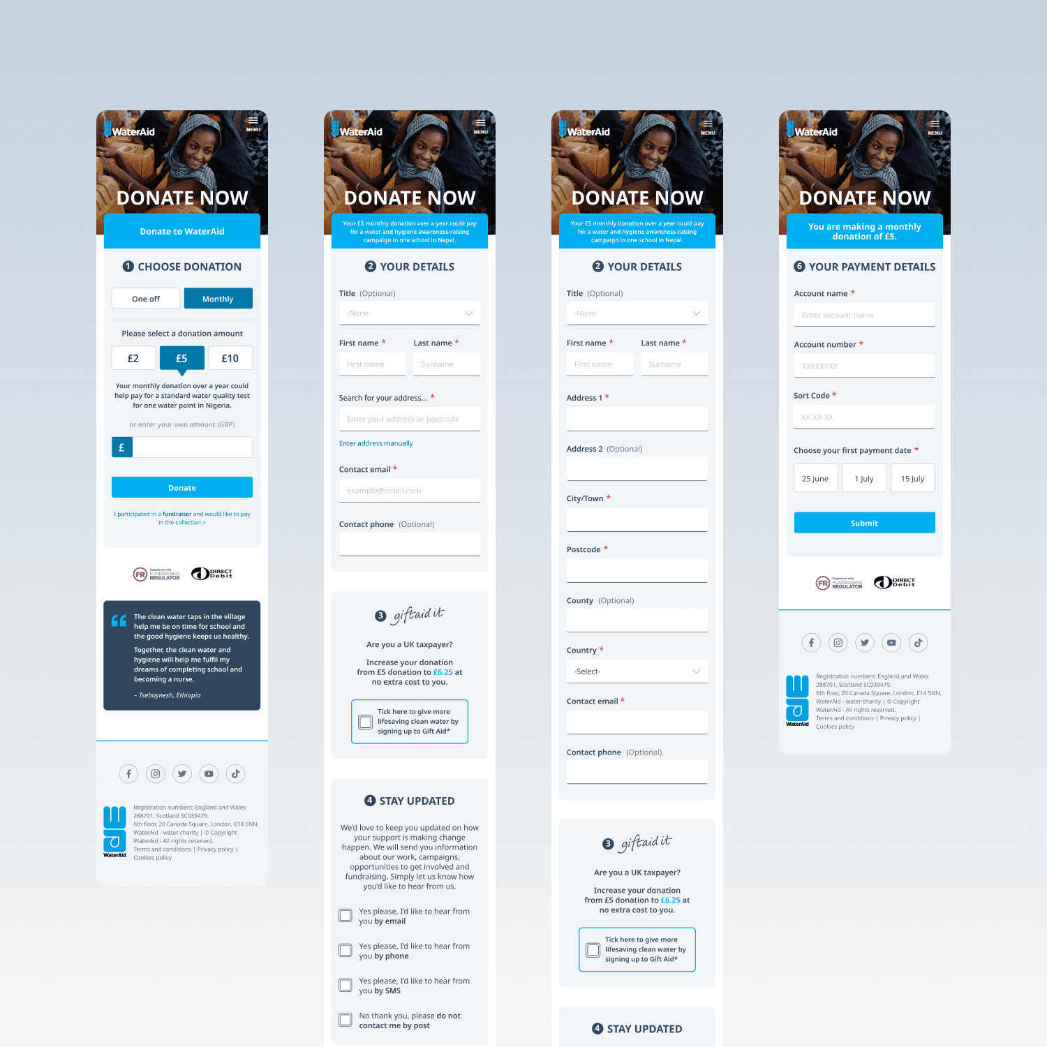 Our redesigned WaterAid funnel has become a beacon of success, guiding donors to support millions. Through agile methodologies, rapid adjustments, and clear communication, I turned a challenging client relationship into a thriving global partnership. By prioritising accessibility and usability, we streamlined the donation process, making it inclusive and impactful. Today, my design template remains the foundation of WaterAid’s funnel, advancing their mission with a user-centered approach and allowing for ongoing UX enhancement.
