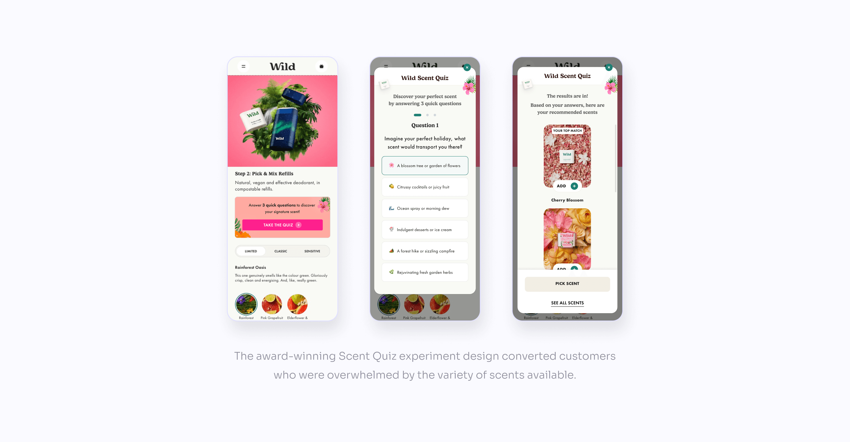 Our experiments identified and optimised key UX levers that shape user behavior. Leveraging AI tools for predictive accuracy, we introduced a standout solution—a scent quiz that engaged users and guided their choices. This collaborative effort within our pod won me the 2023 Conversion Design of the Year Award, celebrating teamwork, innovation, and user engagement.