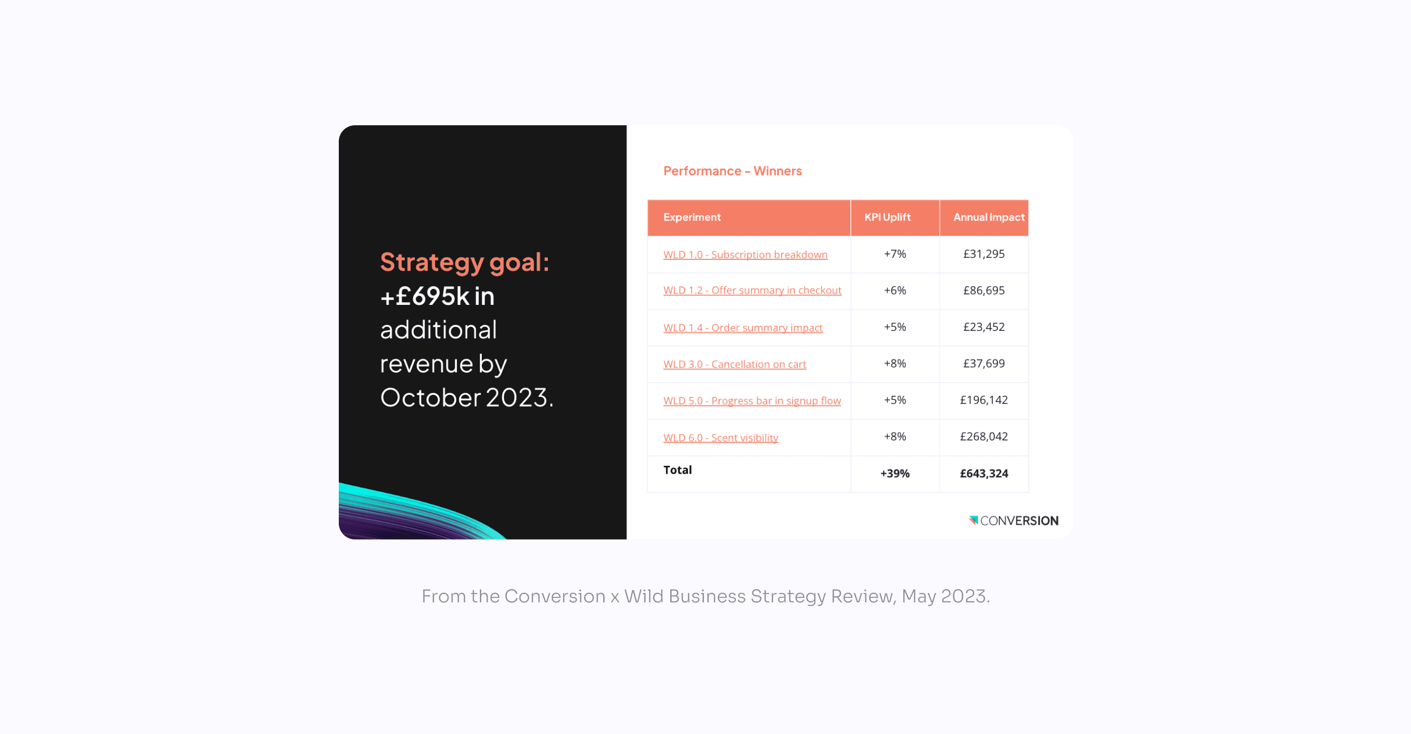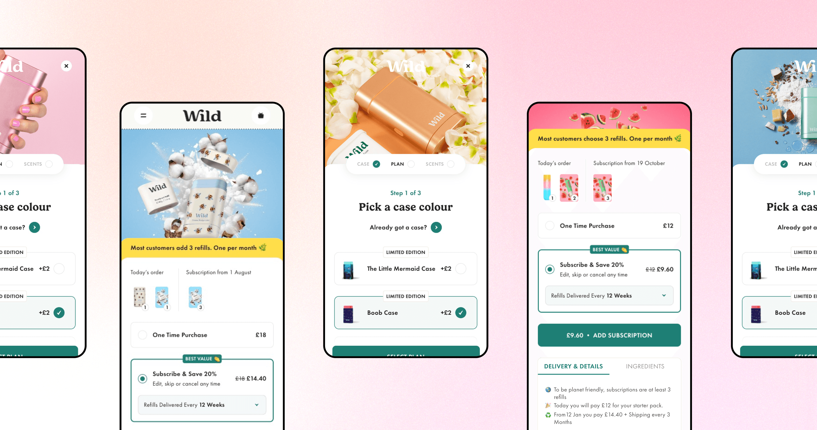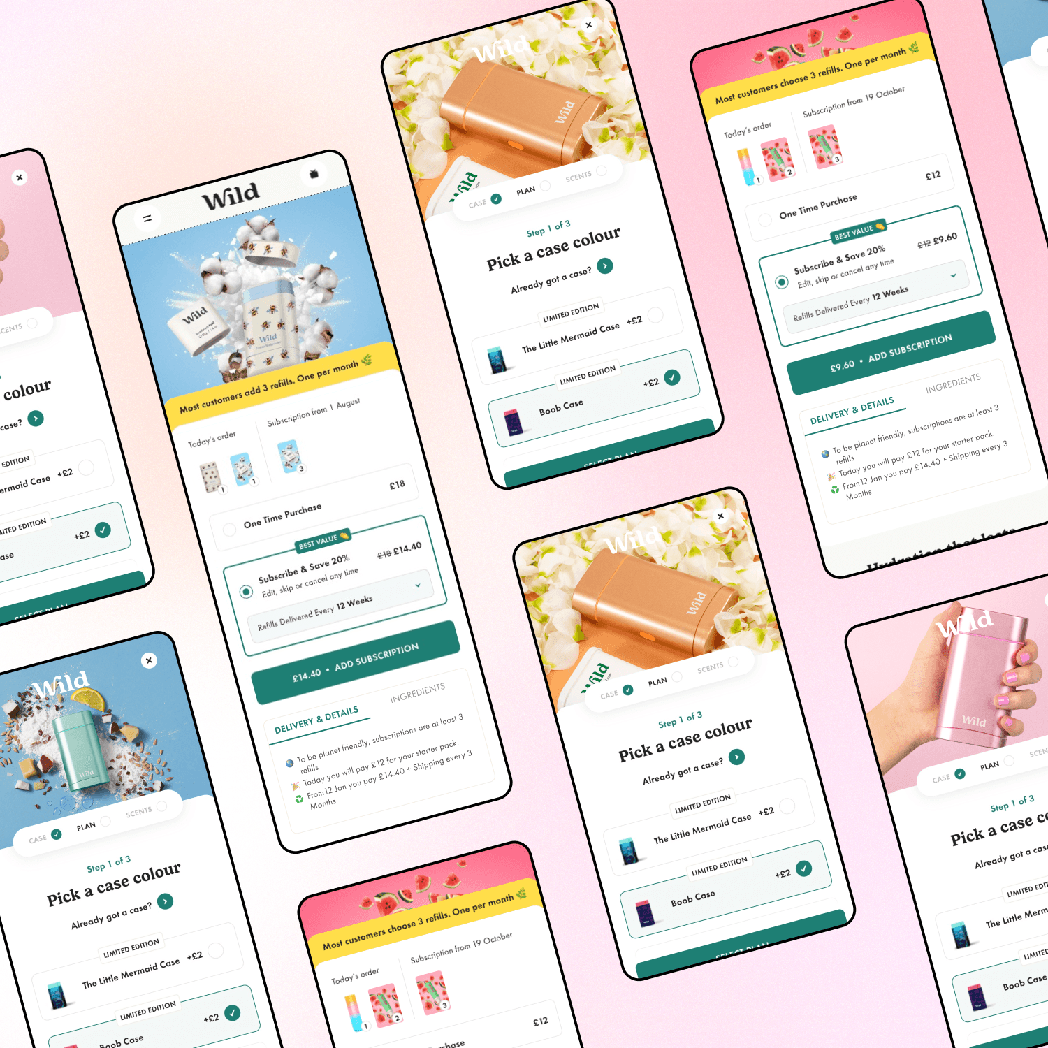 Our collaboration with Wild has driven revenue, supported a radical redesign, and secured 18 months of client loyalty. In 2023, we surpassed our target of +£695K, a key milestone. Leading this project, I’m proud of the impactful experiments, insights, and UI standards we upheld. Adapting to constant SKU changes has honed my design skills, and our work showcases the power of creative experimentation and strong client relationships—delivering growth and a refined user experience aligned with Wild’s values.
